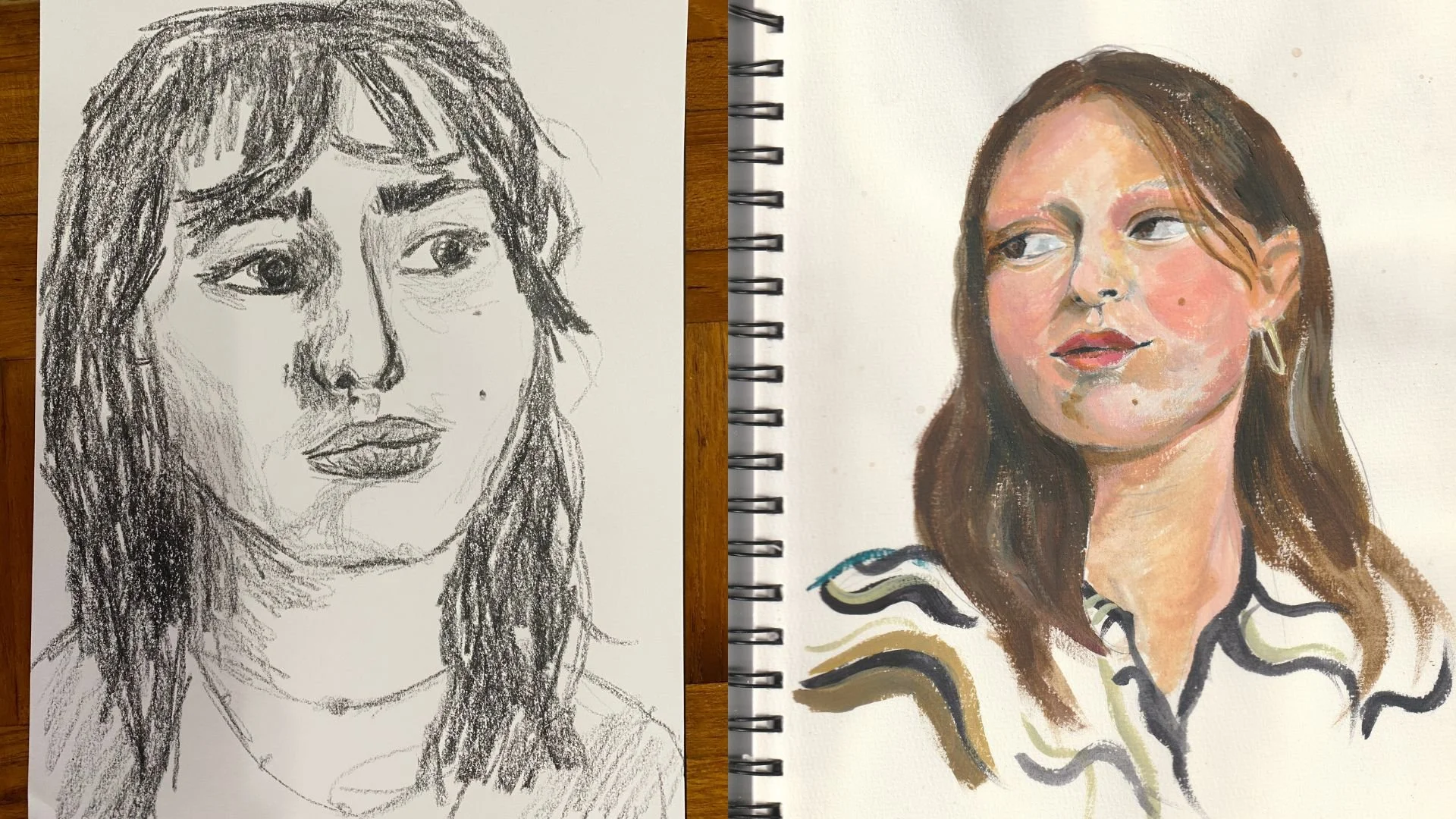 (Left) drawing of Vanessa by Lucy, (right) drawing of Lucy by Vanessa
