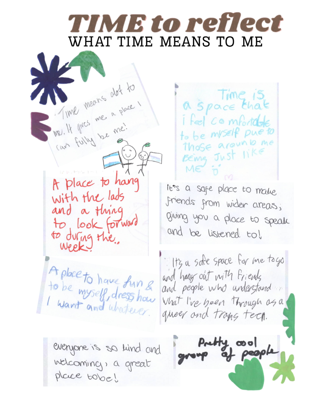 A: We wanted to show the range of creative talents that our young people have and also to highlight the fun we have at TIME. It has been a creative tool to advertise TIME, and we have had young people join from reading the zine.